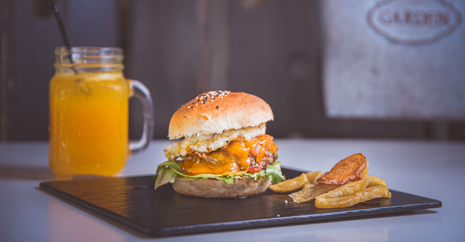 Hambúrgueres suculentos, opções vegetarianas e vegan, sempre com ingredientes frescos e de qualidade.